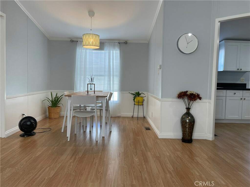 Welcome to this beautiful, move -in condition home at Magnolia Ridge Park, Spc#27. This home features 3 bedrooms and 2 bath with a bright and open floor plan. The whole interior and exterior of the home have been fully painted. New laminate floors installed all over. New ceiling fan with light in living room, new hanging light in dining room and new recessed lighting all over. Master bedroom suite has good size closet space with 2 doors. Newer bathroom vanities, new floor tiles and lighting fixtures in both bathrooms. Window air conditioner in master bedroom, living room area and a portable AC in the 2nd room. New hinges and door knobs on all doors. Good size kitchen with beautiful cabinets, lots of storage space, Corian counter top, lazy Susan cabinet and a pull-out cabinet for condiments/spices. There is a metal shed at the side of the house to store your large items. Carport can accommodate 2 vehicles. The Park has a community pool and is conveniently located close to schools and shopping. Easy access to 91 and 5 freeways, near park & ride facility. About 10-15 min. ride to Disneyland and Knotts Berry Farm. The Park is an all-ages community, it is well maintained and has pride of ownership.