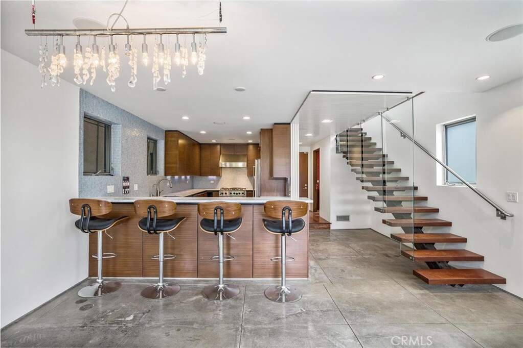 Chic and Sophisticated this Modern Architectural 4 bed 3 bath home with an incredible roof top deck is perfect for entertaining and enjoying the Venice lifestyle. Warm and inviting, the light filled living room with floor to ceiling windows, fireplace with the artistic touch of a D. Zapata original, concrete flooring and steel accents opens to the Chef's kitchen equipped with custom mahogany cabinetry, Carrera counter tops, glass mosaic back splash and high end stainless steel appliances. The floating wood & glass staircase leads you to the second floor with two sizable bedrooms, designer bath, laundry room and an artistic space overlooking the living room perfect for a study or reading lounge. The third floor boasts a generous master bedroom complete with its own private bath and decorative touches and a 4th bedroom and a media room. The roof top deck with its' 360 degree city & mountain views adds to the unmistakable ambiance of Venice. Two car attached garage. Close to Abbot Kinney & the beach!